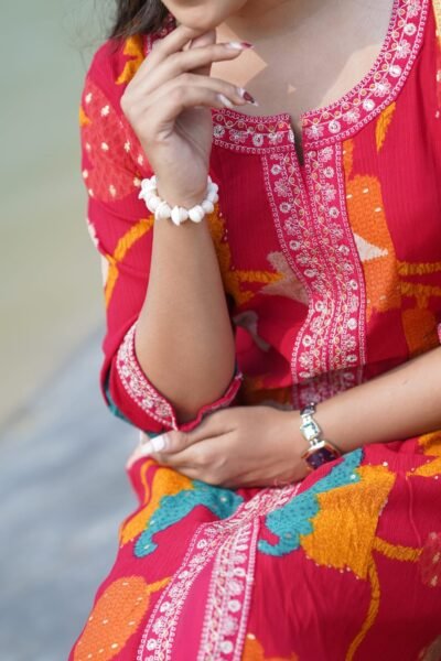 Keep your Ibarat kurti fresh and elegant with gentle hand wash or dry cleaning. Use mild detergent, avoid harsh sunlight, and iron on low heat. Store neatly folded in a cool place to preserve its softness, color, and intricate detailing for long-lasting charm.